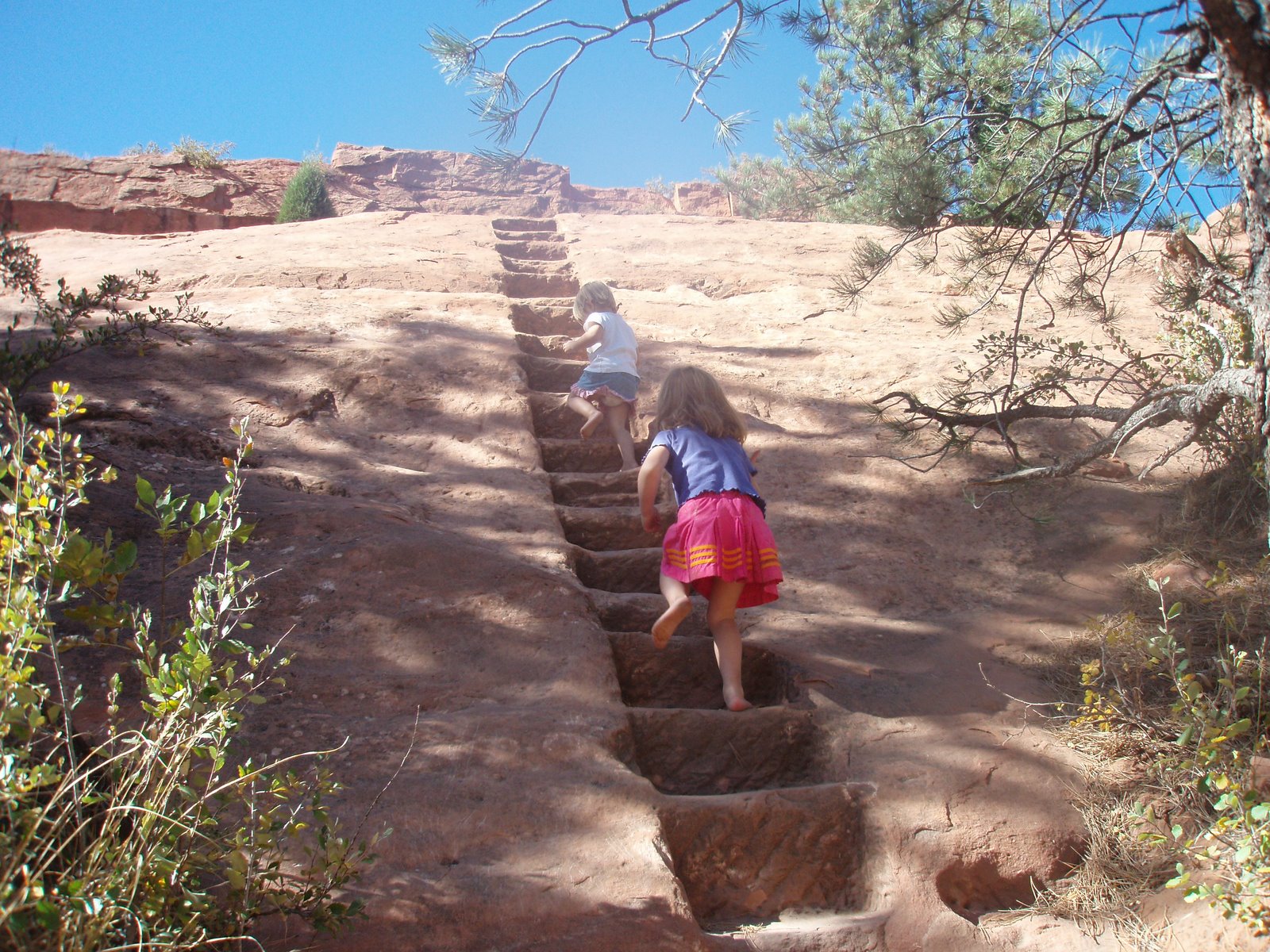 Saturday I rode over to Red Rocks Open Space. I let the kids play in the pond for a while and then rode up to the quarry. The kids got out and climbed up the stairs cut into the rock and I dragged the trailer up into the quarry. The kids played around in the rocks there.